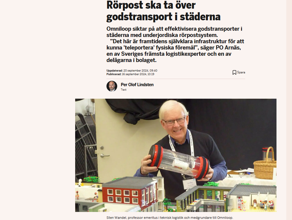 Read about our groundbreaking approach to sustainable city logistics in Sweden’s premier business newspaper Dagens Industri. https://www.di.se/nyheter/rorpost-ska-ta-over-godstransport-i-staderna/